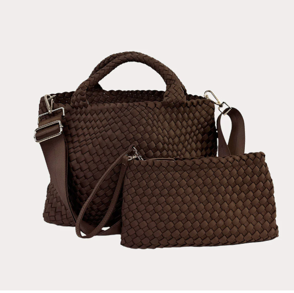 The Lily Tote: Your versatile carry-all companion for every occasion. Crafted from resilient woven neoprene, this tote boasts durability and easy maintenance, ensuring it remains pristine no matter the adventure. Whether you're navigating through your daily routine or embarking on a getaway, the Lily Tote offers ample space to accommodate your essentials. Plus, its thoughtful design includes a detachable crossbody strap for added convenience and a matching zip pouch to keep your valuables organized on the go.