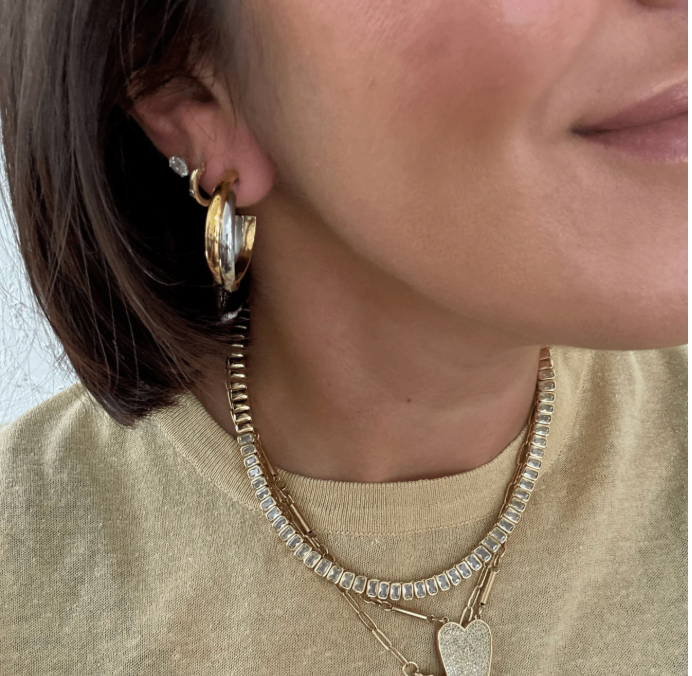 These Lira Two Tone Hoops are sleek and versatile half hoops that effortlessly combine gold and silver for a chic two-tone look. Crafted to be lightweight and water resistant, these hoops are perfect for everyday wear. Make a statement with these interlocking hoops that are both stylish and practical.