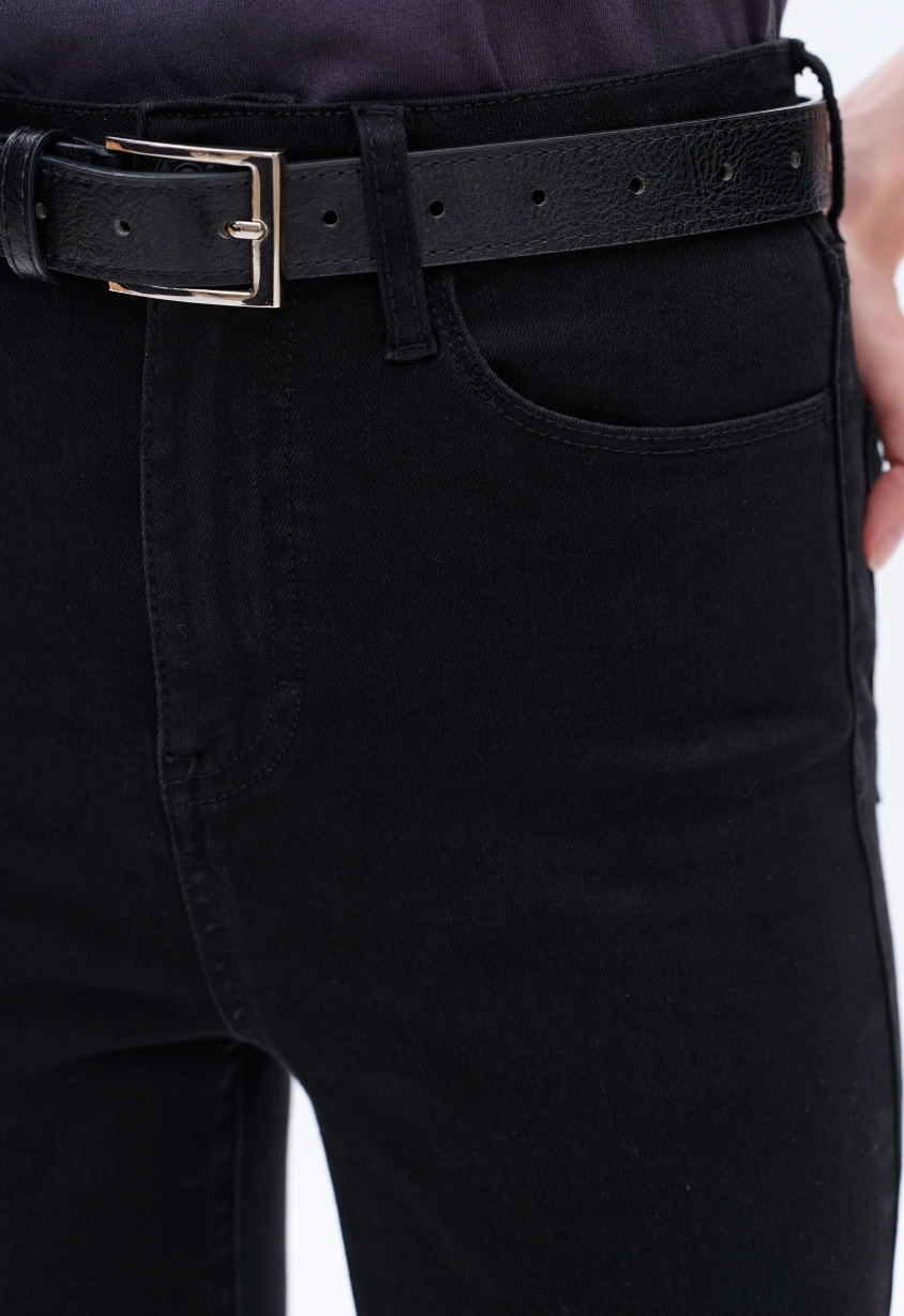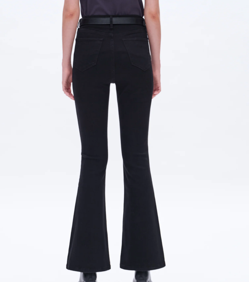 Made from high-stretch black denim, these flare jeans offer a flattering silhouette with front slip pockets and a classic zip fly closure. A wardrobe staple for an effortlessly chic look.