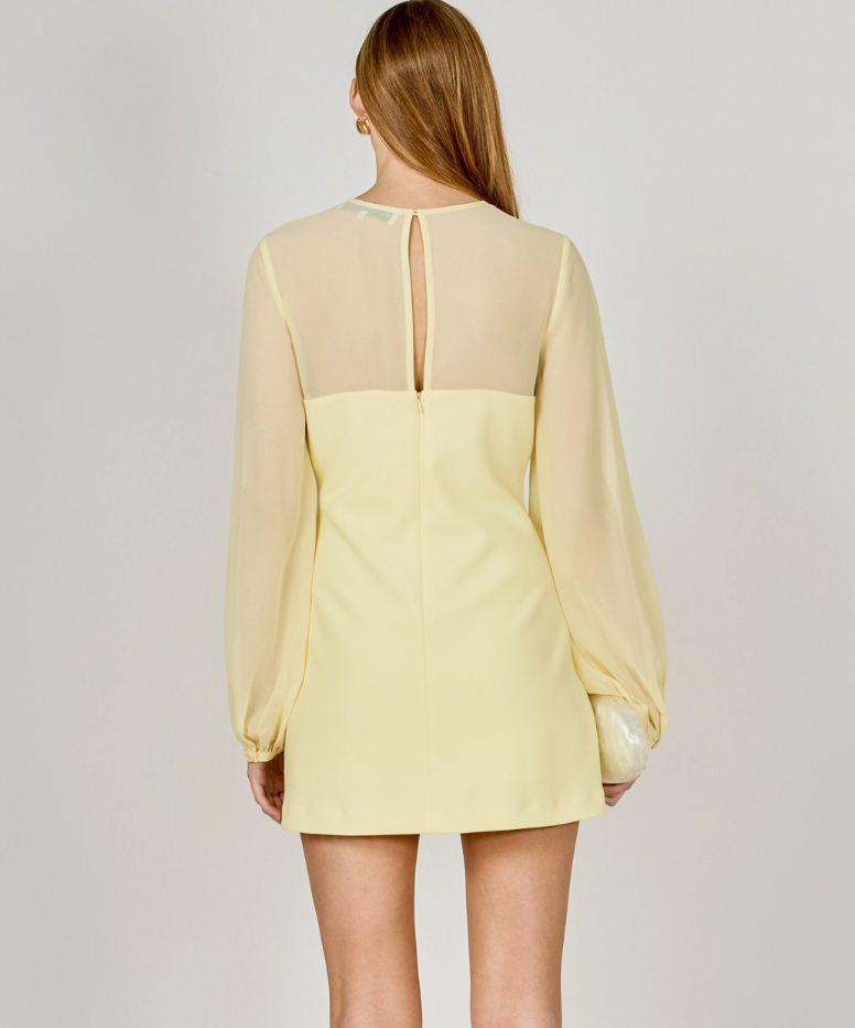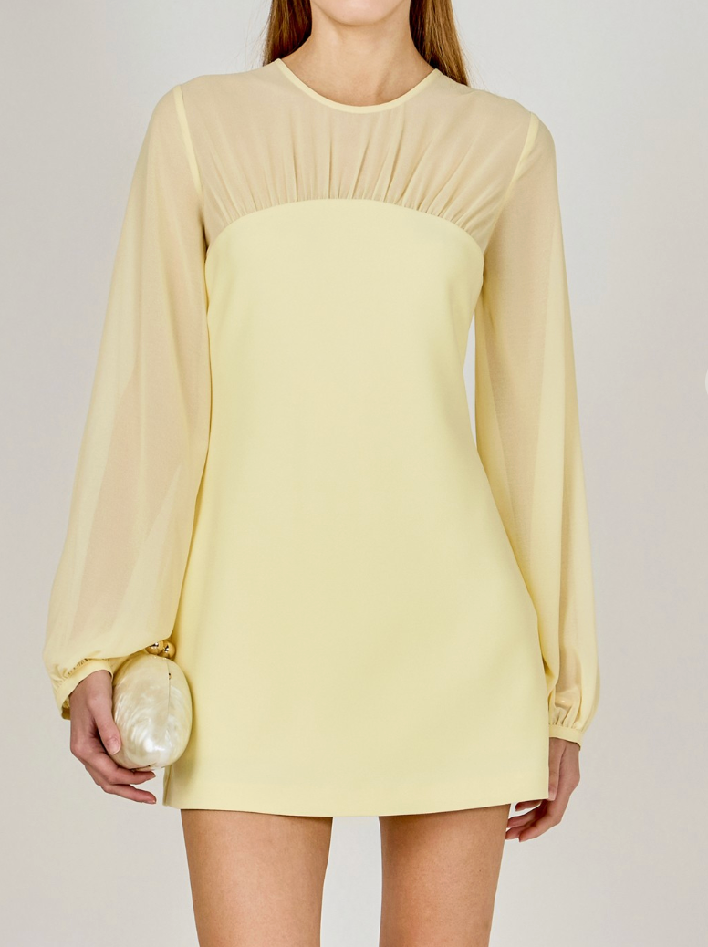 Elevate your everyday style with this chic mini dress featuring dramatic puff sleeves that command attention. The fitted silhouette hugs your curves in all the right ways, while mixed media construction adds visual intrigue and texture. Long sleeves provide coverage without sacrificing that flirty mini length, and the convenient back zipper makes getting dressed effortless. Perfect for transitioning from day to night with confidence and flair.