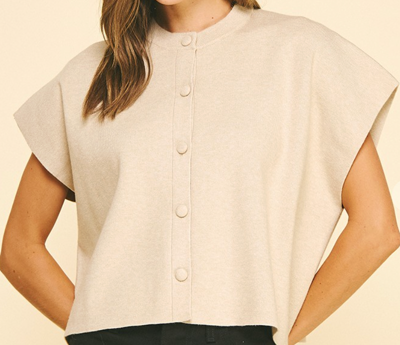 This cozy IP LORA OAT CARDI features a classic round neck and a button-down front for easy layering. Its cap sleeves add a stylish touch while keeping you comfortable throughout the day. Perfect for elevating everyday looks with a subtle, elegant flair.