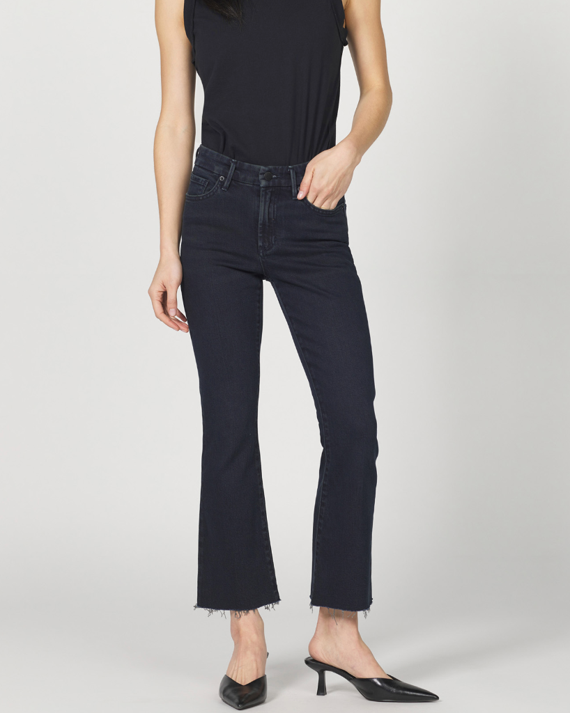 Elevate your wardrobe with the JD Jeanne Joji Cropped Flare Dark Indigo Denim Jean. Featuring a flattering cropped flare silhouette, this jean offers a modern twist on classic denim. The rich dark indigo wash provides a versatile foundation for both casual and dressier looks. Designed for comfort and style, these jeans effortlessly enhance your silhouette while adding a trendy edge to any outfit. Perfect for pairing with your favorite tops and shoes, they bring a polished yet relaxed vibe to your everyday wear.