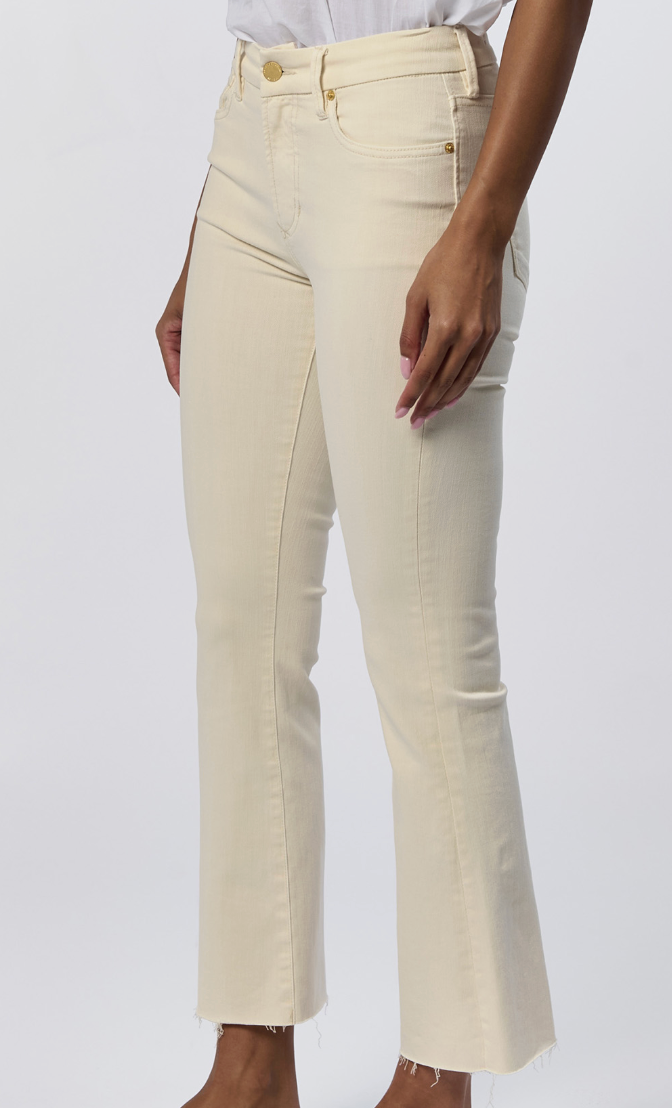 JD Jeanne Wheat ankle flare denim pants bring effortless style to your everyday wardrobe. Crafted in a crisp cream, these pants feature a flattering flare silhouette that elongates the leg while maintaining a modern edge. The ankle-length cut pairs seamlessly with sneakers, boots, or heels, making them a versatile staple for any season. Perfect for dressing up or down, these pants deliver timeless appeal with contemporary flair that works as hard as you do.