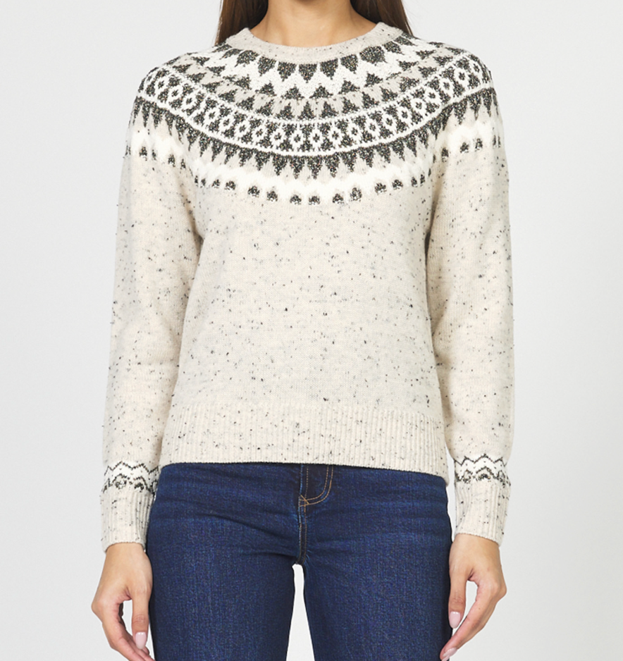 Elevate your wardrobe with the JD MARIELLA CRM, a classic sweater enhanced by a subtle shimmer woven throughout. Its timeless design pairs effortlessly with any outfit, while the delicate sparkle adds a refined touch of elegance. Perfect for both casual and dressier occasions, this sweater ensures you stand out with understated glamour and comfort all day long.