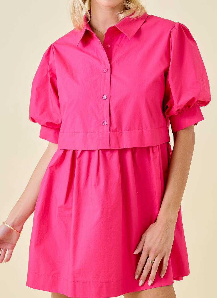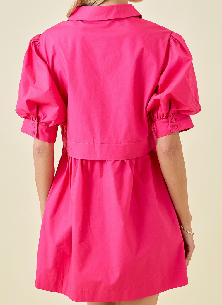 Elevate your everyday wardrobe with this stunning raspberry button-down shirt dress. The classic collared silhouette offers timeless sophistication, while the rich, flattering color makes a bold statement. Perfect for layering or wearing solo, this versatile piece transitions seamlessly from office to weekend brunch. The structured design provides a polished look that works for virtually any occasion, giving you effortless style without compromise.