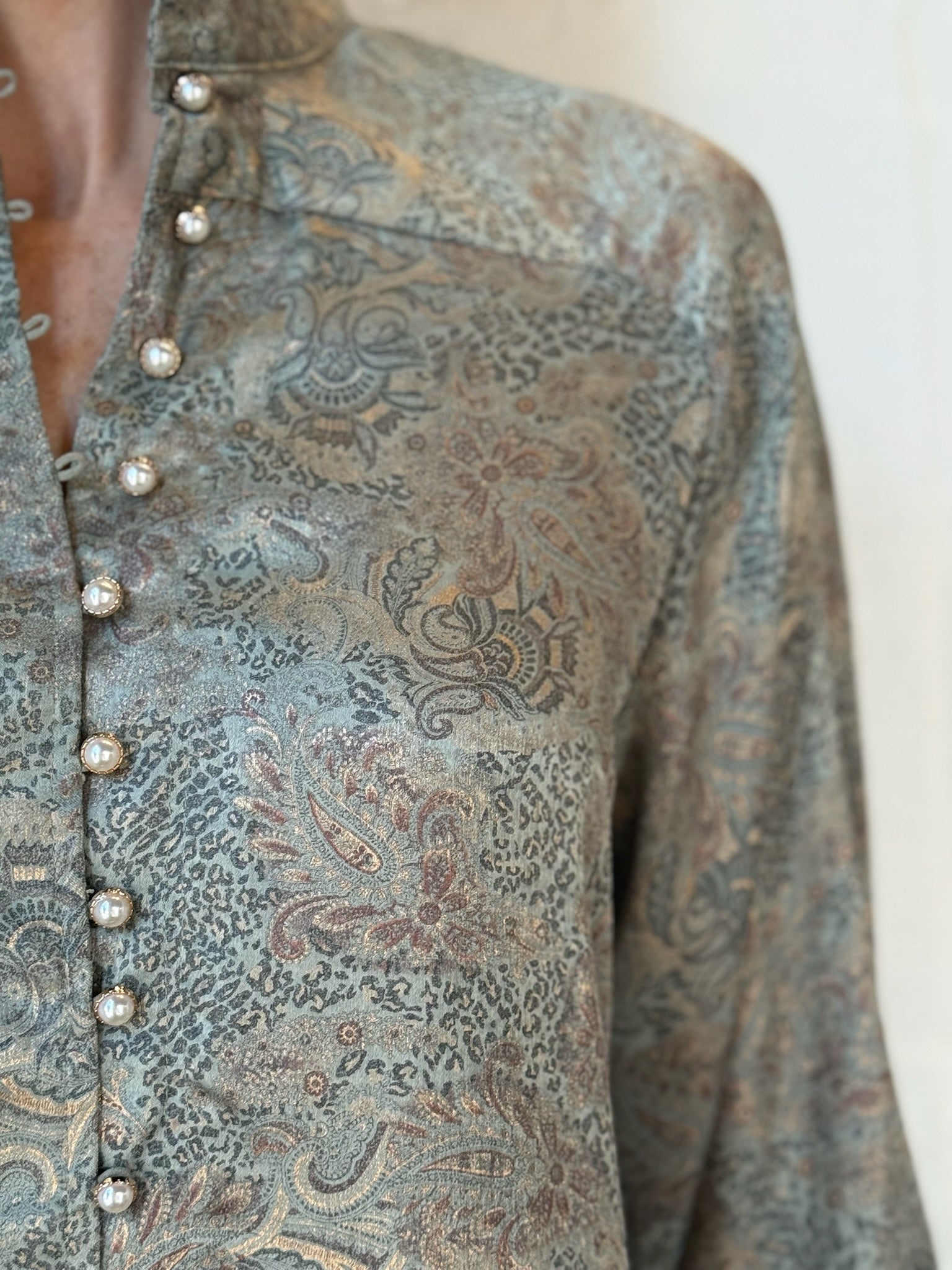 Elevate your wardrobe with this stunning satin dress featuring an intricate tapestry pattern. The delicate pearl buttons down the front add a timeless touch of elegance, while the flattering drop waist silhouette enhances your natural shape. Perfect for special occasions, this dress combines classic charm with sophisticated style to make you feel confident and radiant.