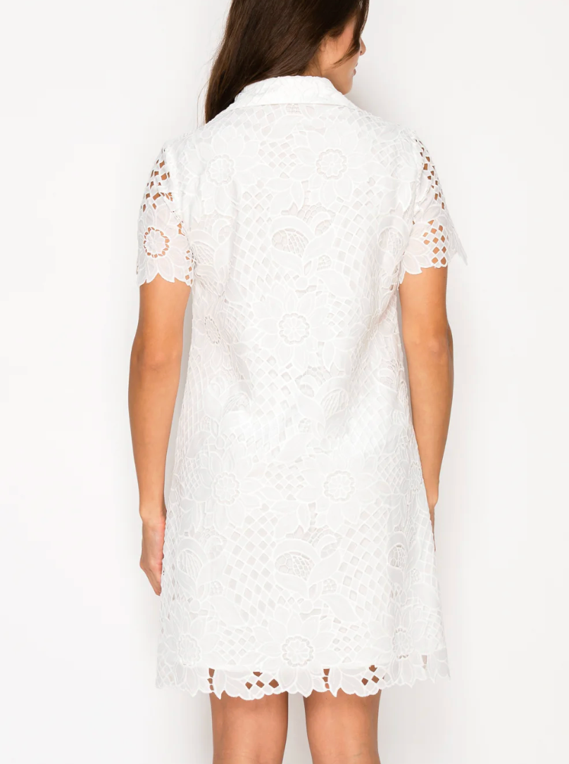 This isn't just a shirt dress; it's a wearable work of art. The classic, collared button-front design is completely reimagined in exquisite, intricate floral lace. Beautiful, open-work lace on the sleeves adds an extra layer of delicate charm, while the effortless shift silhouette promises a look that is both timeless and breathtakingly beautiful.