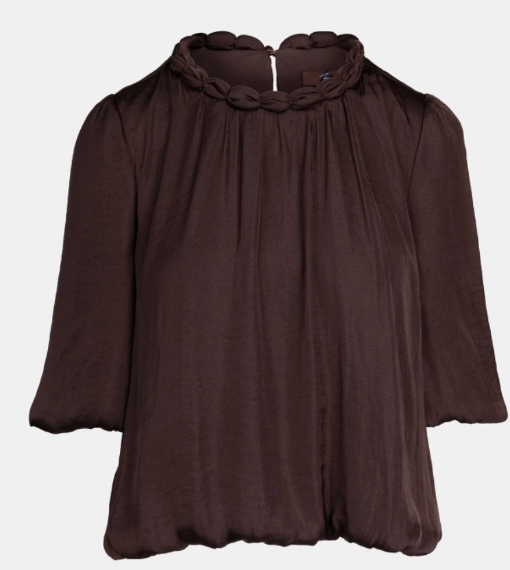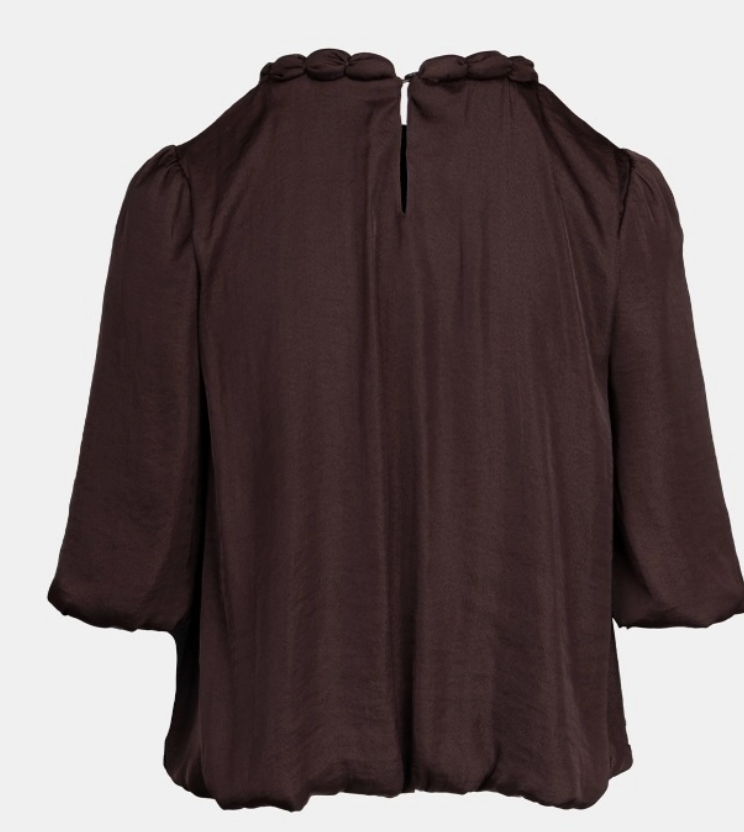Women's Round Neckline Accent Billowy Blouse Lightweight woven fabric, fully lined for a polished drape. Ball detail accent along the round neckline adds a chic finish. Half sleeve with bubble hem and back keyhole closure for subtle dimension. Wear tucked into tailored pants for work or pair with a denim for an elevated evening look.