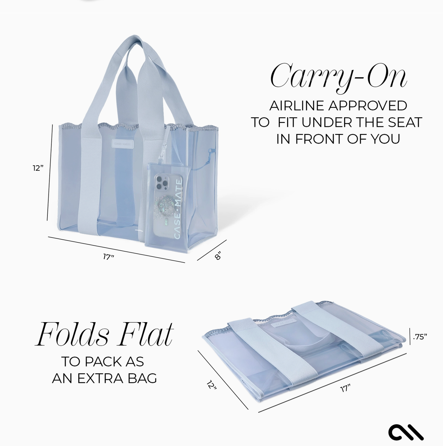 From girl's weekend to family vacation— elevate your beach experience with the Carolina Blue Crochet Wave Jelly Tote! Featuring an irresistible iridescent design, this tip-proof beach bag repels water and sand to keep your beach essentials protected during your perfect beach day. The spacious interior holds towels, spare clothes, phones, wallets, and more, while the key leash ensures you don’t lose your ride home in the sand. Better beach days are ahead with this must-have vacation bag!