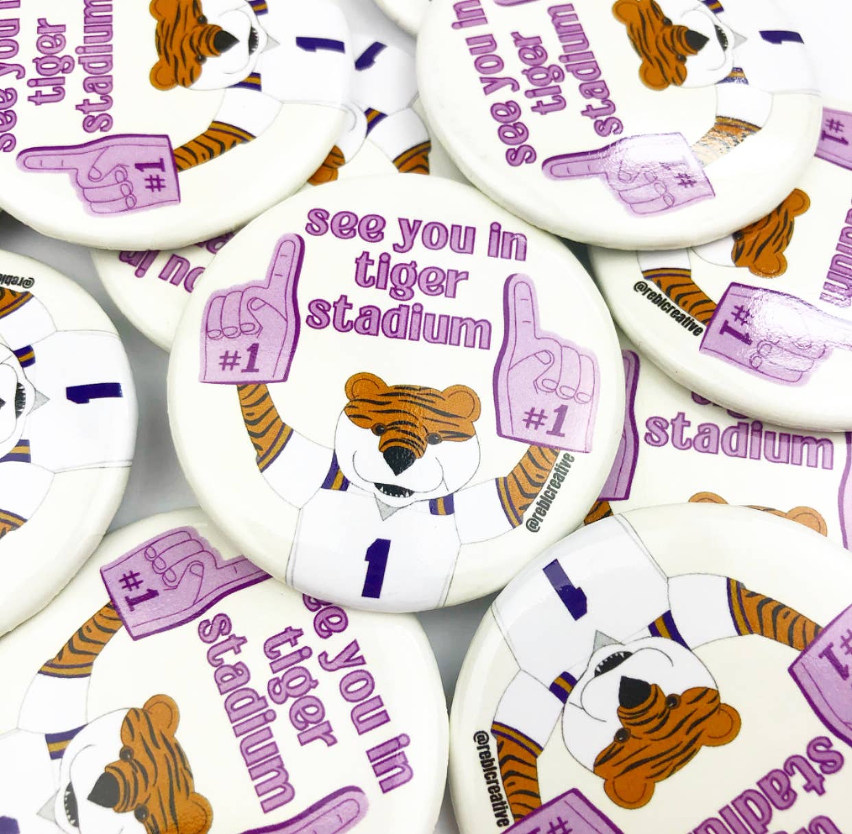 Each pin back button is 2.25 inches in diameter. These buttons are super lightweight and perfect for Game Day! Add to your outfit or a purse strap to complete your game day look. Each button is finished with a plastic coating to keep your button clean from any game day activities!Β