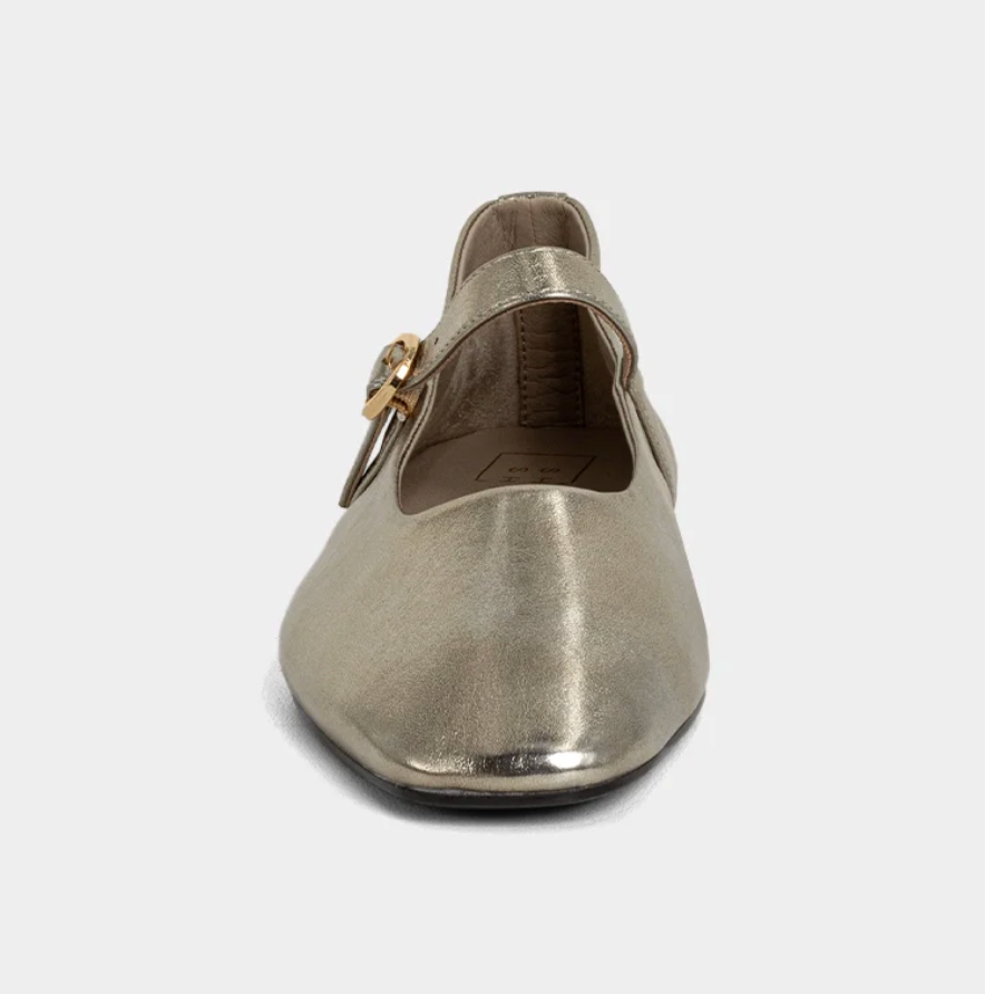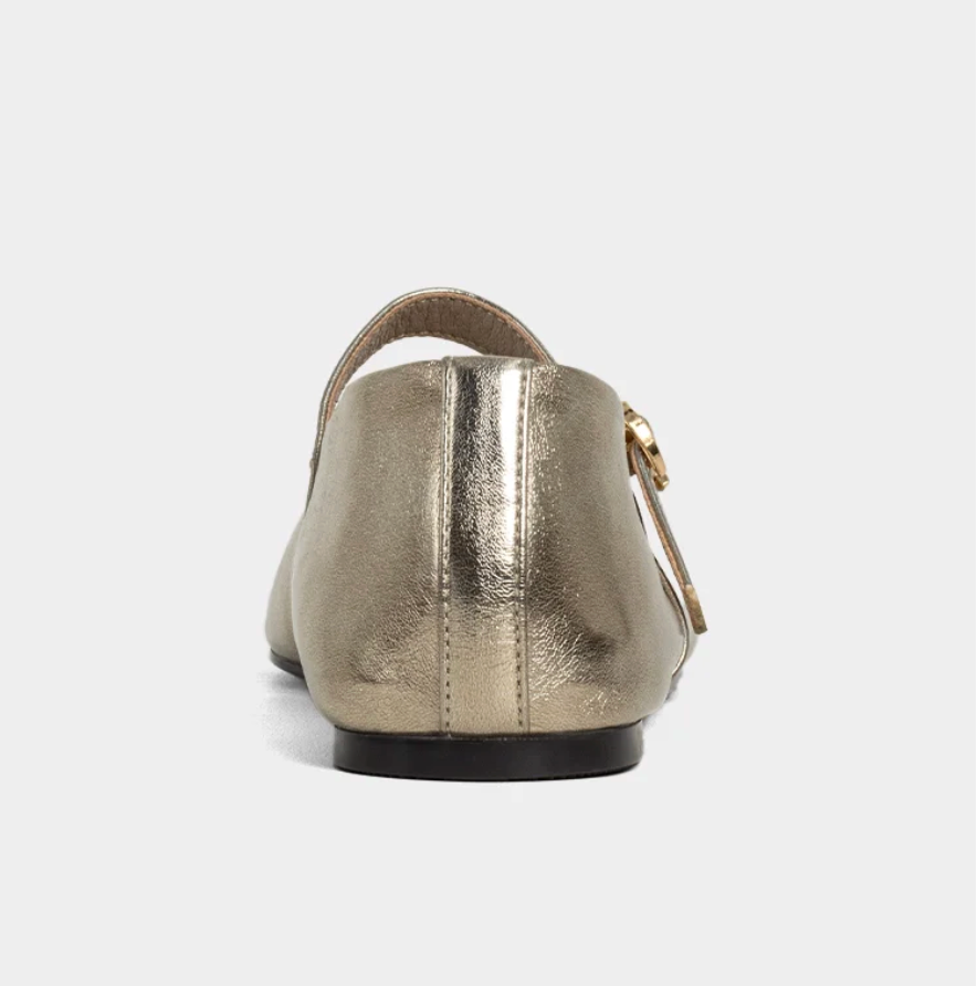 The classic Mary Jane gets a golden glow-up. ANNABELLE in Gold is your go-to flat for dressing up everyday looks or adding polish to an evening fit. With its rounded toe, delicate strap, and softly gleaming faux leather, this pair blends Parisian charm with modern shine. Comfortable enough for all-day wear, chic enough for any occasion, this is the metallic flat that plays well with denim, suiting, and everything in between.