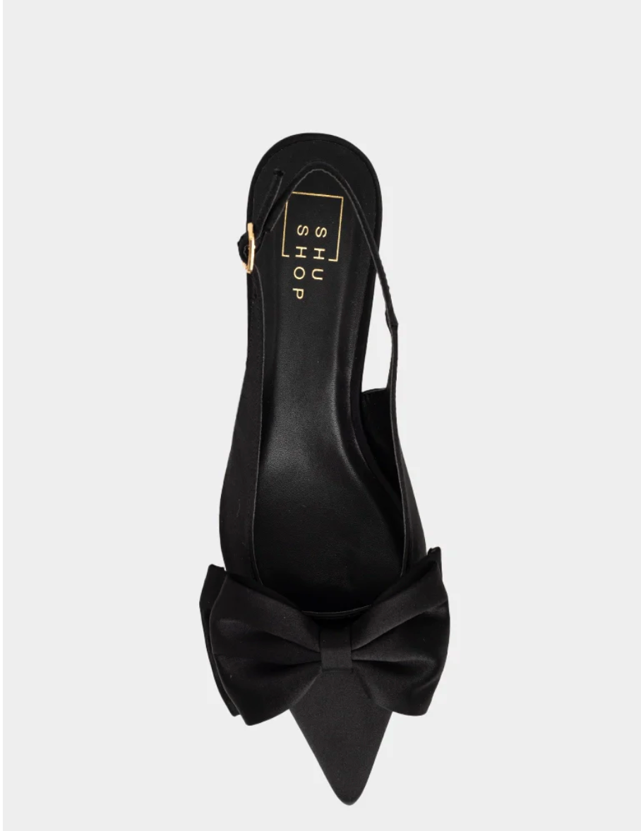 When timeless design meets understated drama. NORA in Black is the essential slingback kitten heel that adds polish to any outfit. With a graceful silhouette, soft satin finish, and oversized bow detail, it’s the versatile heel you’ll reach for again and again-equally chic for everyday wear or an evening out.