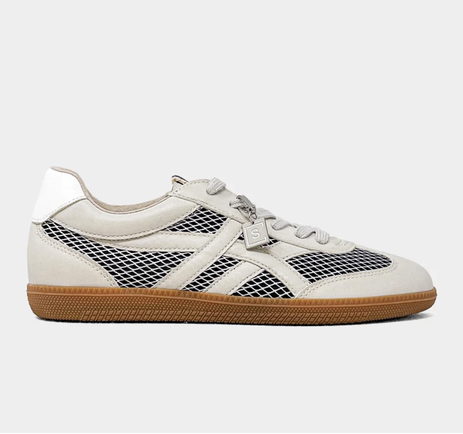 The SASHA sneaker gets a daring upgrade in this standout Metal edition. Featuring a bold mesh upper in black and silver, this version plays with texture and contrast while keeping the iconic gum sole and sleek silhouette you love. The result? A statement sneaker that feels sporty, stylish, and totally unexpected.