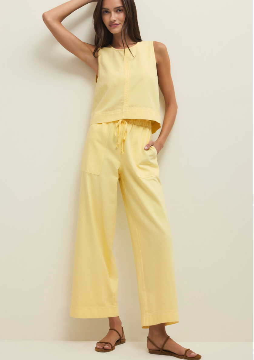Crafted from a breezy twill fabric, this pant combines an ankle length, wide leg fit with an easy elastic waistband for all-day comfort. The smooth texture make it a travel-ready favorite