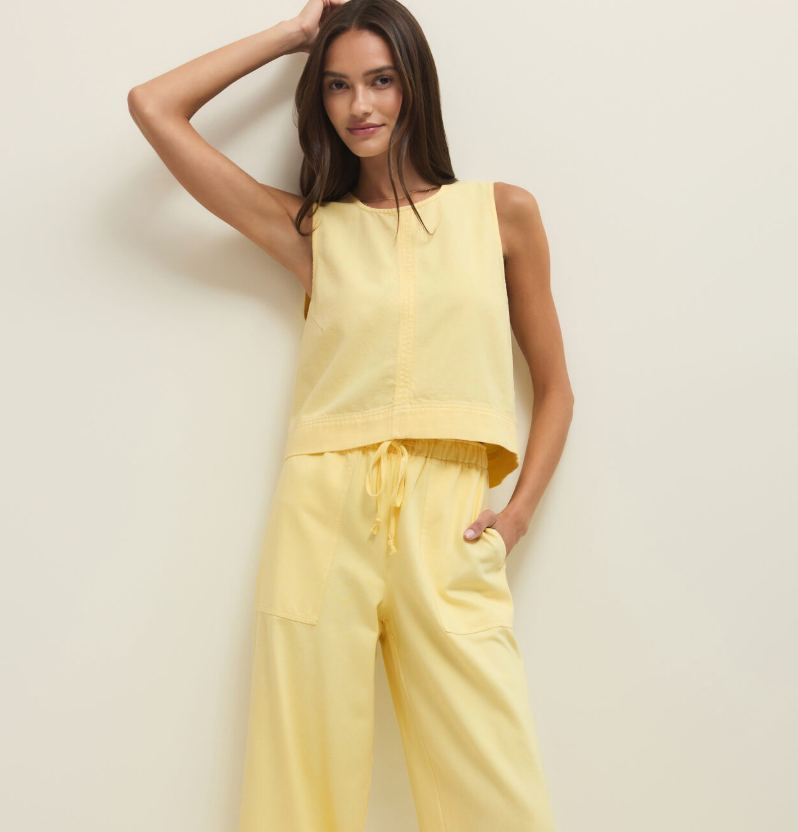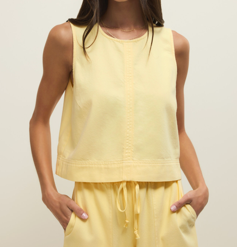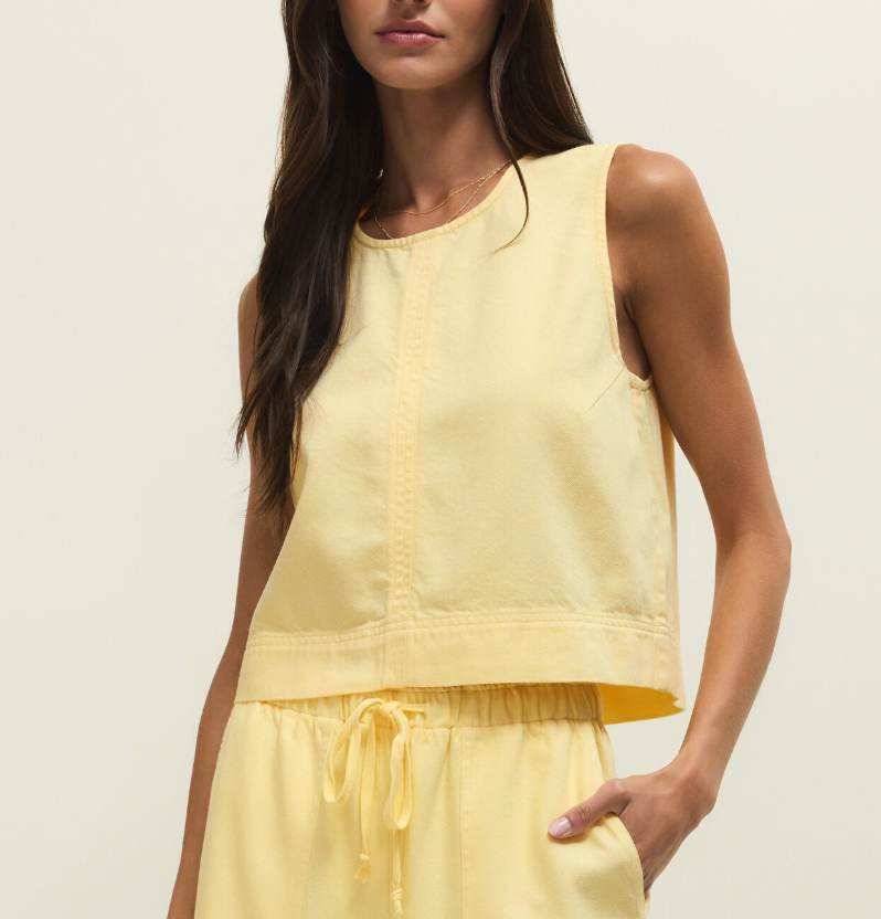 Soft and structured, this twill tank offers a modern twist on denim-inspired style. The fabric has a smooth, sun-washed feel that’s perfect for everyday wear. Pair it with your favorite bottoms for a relaxed look that feels pulled together.